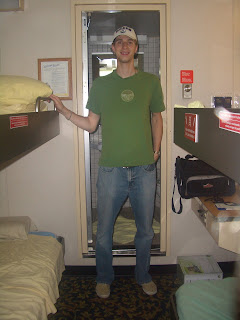 The ferry ride was uneventful. We left 1.5 hours after we were scheduled to (are we on Newfoundland time already??) but as soon as we hit the cabin we both went to sleep. We only got 5 hours of sleep that night and seeing as we had already been on the road for 2 days we were quite exhausted. Walking on the ferry was a bit difficult as it rocked alot. The best part of the ferry ride was that our budgie, Kermit, didn't die in the car!!!! We were (well I was) apprehensive about leaving him in the car especially when Chris said he couldn't guarantee he'd be ok (WHAT???? no guarantee??) so I made Chris look in on him first when we got back to the car. The worst part of the ferry ride for me at least was the scalding hot shower - how is that suppose to wake me up at 6am????
